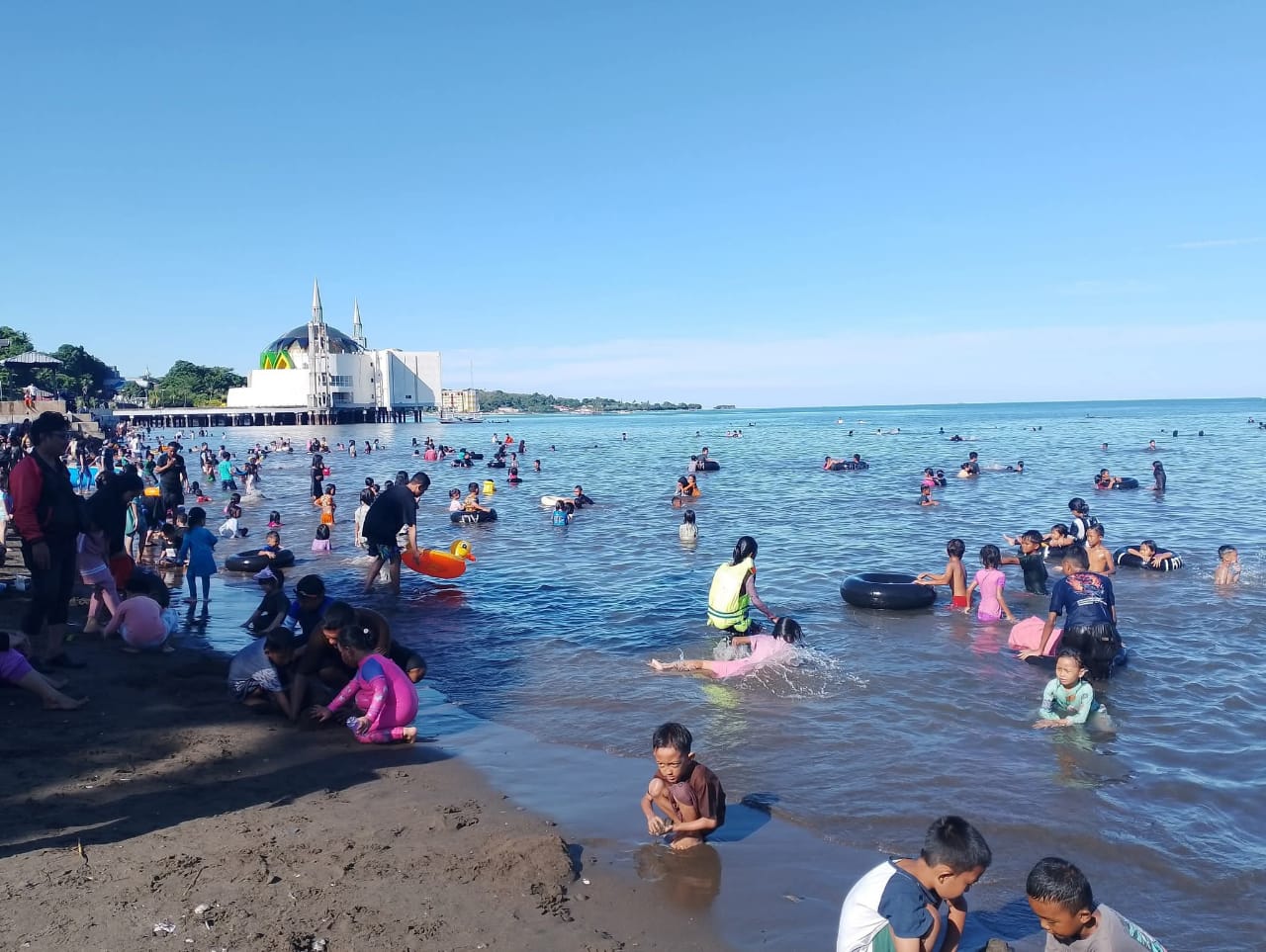 Salah Satu Yang mendukung Pantaiku ini karena Lokasinya sangat strategis berada di Jantung Kota berdampingan dengan Masjid Terapung Yang memang Selama ini juga di Penuhi Pengunjung