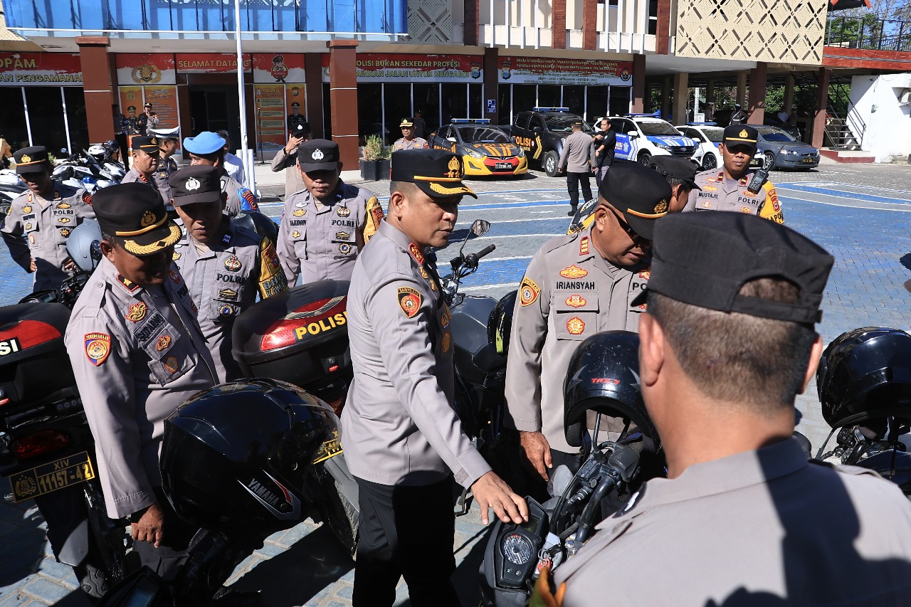 Pemeriksaan ini mencakup seluruh jenis kendaraan operasional, mulai dari sepeda motor, mobil patroli hingga truk, guna memastikan kondisi kendaraan dalam keadaan layak jalan dan siap digunakan kapan pun diperlukan.