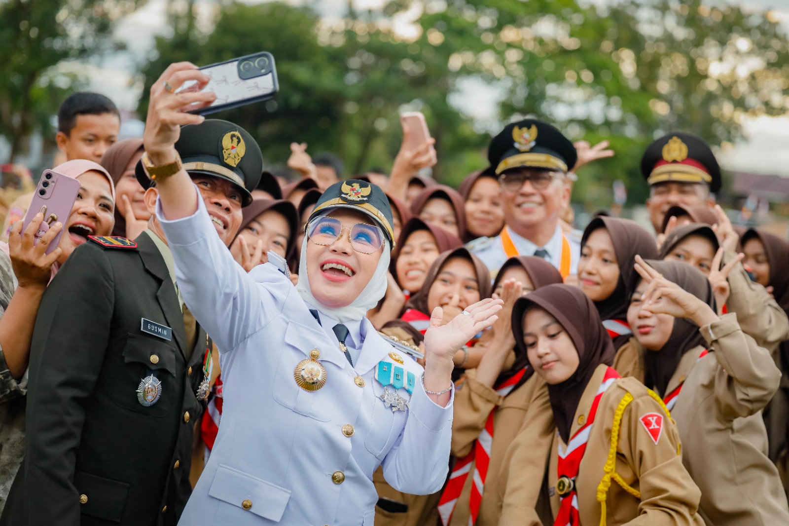 Bagi para pelajar, momen ini tentunya menjadi pengalaman tak terlupakan. “Senang sekali bisa foto bareng Ibu Bupati. Rasanya seperti dapat hadiah di hari kemerdekaan,” ungkap salah satu anggota pramuka sambil tersenyum malu-malu.