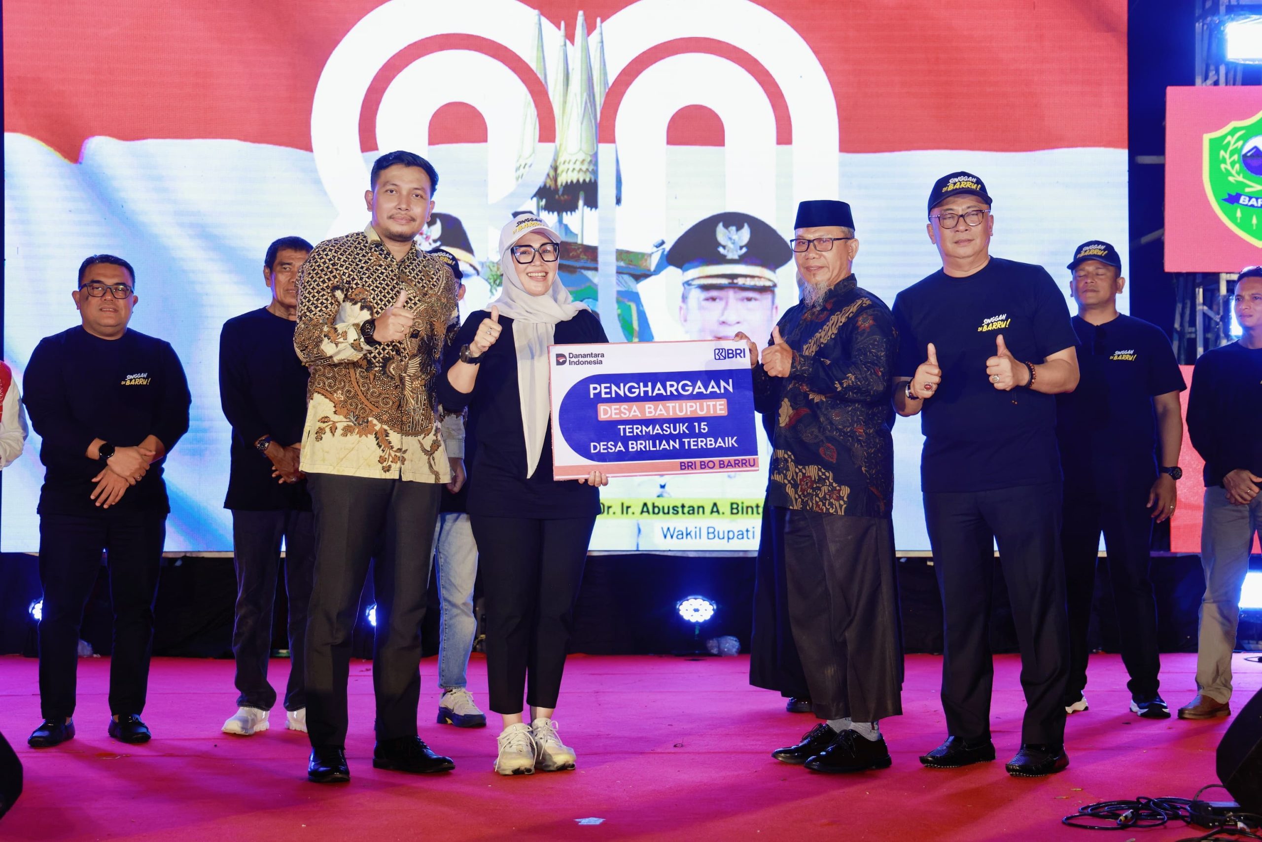Penghargaan ini diserahkan langsung oleh jajaran pemerintah daerah bersama pihak BRI kepada perwakilan Desa Batupete, disaksikan ribuan masyarakat Barru yang hadir dalam penutupan pesta rakyat tersebut.