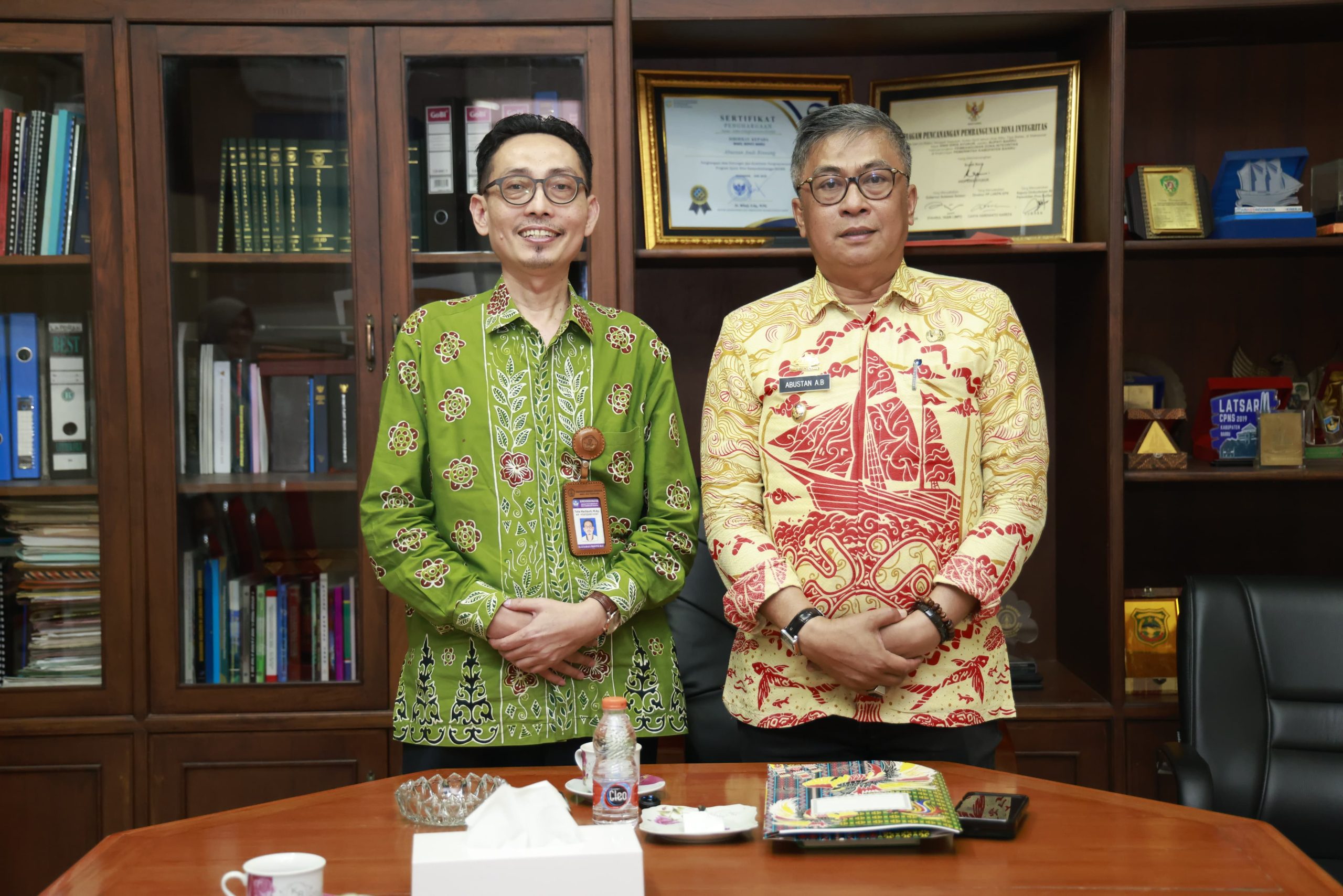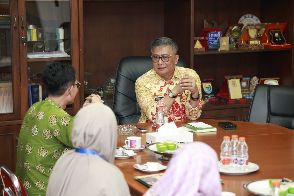 Green Leadership. id – Barru – Wakil Bupati Barru, Dr. Ir. Abustan A. Bintang, M.Si., menerima kunjungan Kepala Balai Bahasa Provinsi Sulawesi Selatan, Badan Pengembangan dan Pembinaan Bahasa, Kementerian Pendidikan Dasar dan Menengah, Toha Machsum, M.Ag., bersama tim kerja Pembinaan dan Bahasa Hukum, Balai Bahasa Provinsi Sulawesi Selatan, di Ruang Kerja Wakil Bupati, Kamis (21/8/2025).