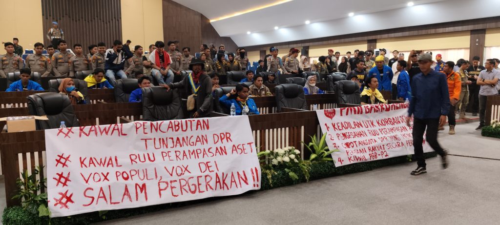 Hal yang Berbeda Aksi Demo diterima di Luar Pintu Masuk, Ketua DPRD beserta Wakil Ketua dan anggota DPRD lainnya turun Kejalan sambut Para Pendemo dan Menyambut Demonstrasi dengan sepakat Meneruskan Tuntutan Gappembar Ke Pusat