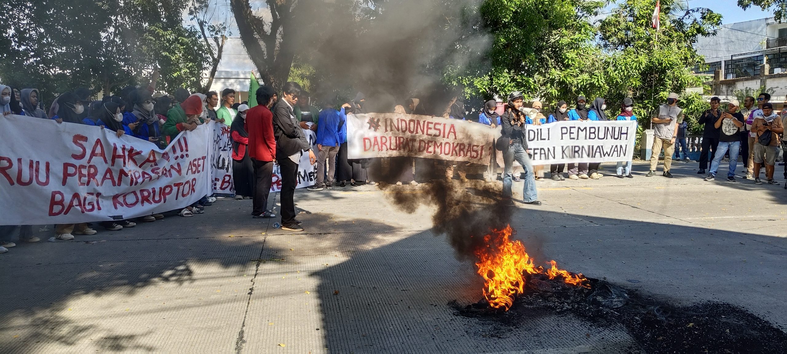 Sementara Aksi Demonstrasi Kedua dari Gappembar, Yang Juga Memulai Aksinya di tugu Payung dengan Massa Yang Lebih Banyak Juga melakukan Orasi di Tugu Payung terus bergerak ke Kantor DPRD dengan Kendaraan Kontainer dan Sebagian Berjalan Kaki, didepan Pintu Masuk Membakar Ban dan Dili Berganti Orasi menyampaikan tuntutan Yang Sama