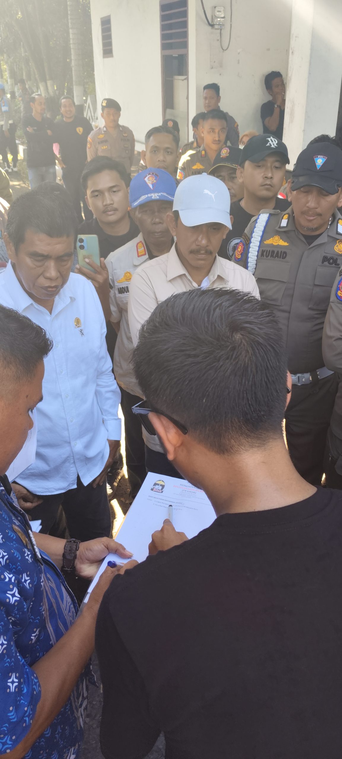 Empat Tuntutan Yang di Serahkan Koordinator Aksi Fakhrul Ke Ketua DPRD H. Syamsuddin Muhiddin Yang Didampingi 2 Wakil Ketua, Ketua Komisi II, Fraksi PDIP, Nasdem, Gerindra, Golkar, PPP, PKS, Ketua DPRD Barru H. Syamsuddin Muhiddin