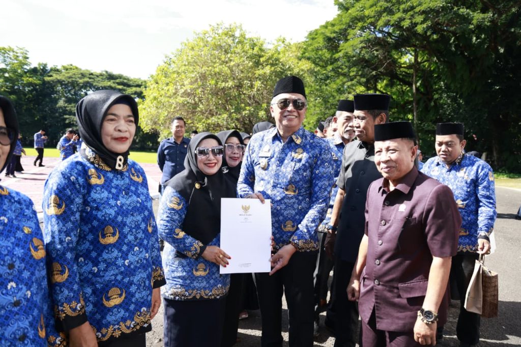 Seusai upacara, kegiatan dilanjutkan dengan penyerahan SK Bupati Barru tentang pemberian kenaikan pangkat pengabdian, pemberhentian dan pemberian pensiun PNS terhitung mulai 1 November 2025 kepada 11 orang oleh Wakil Bupati Barru.
