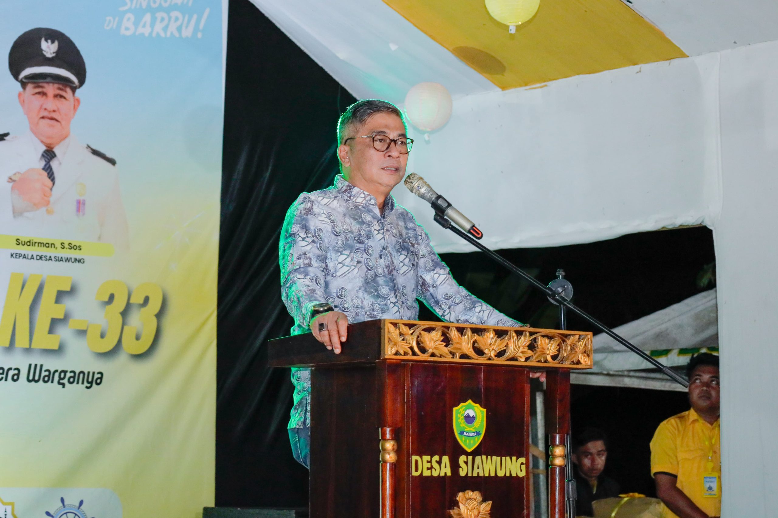 Green Leadership.id – Barru – Mewakil Bupati Barru, Wakil Bupati Barru, Dr. Ir. Abustan A. Bintang, M.Si., menghadiri puncak peringatan Hari Ulang Tahun (HUT) ke-33 Desa Siawung, yang digelar di halaman Kantor Desa Siawung, Kecamatan Barru, Minggu (2/11/2025) malam.